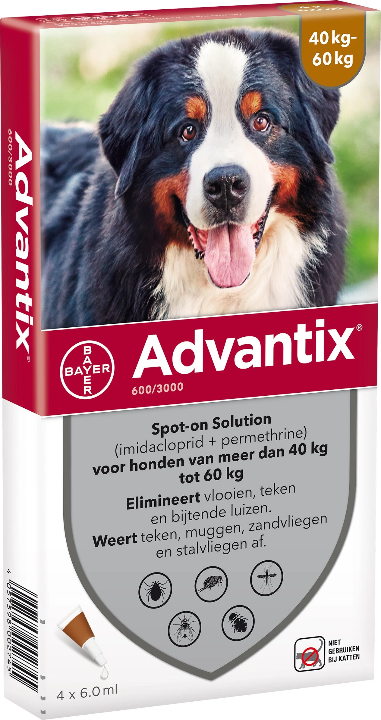 Advantix Spot-on 600 Anti Vlooien- En Tekenmiddel 4 Pipetten 40 – 60 Kg