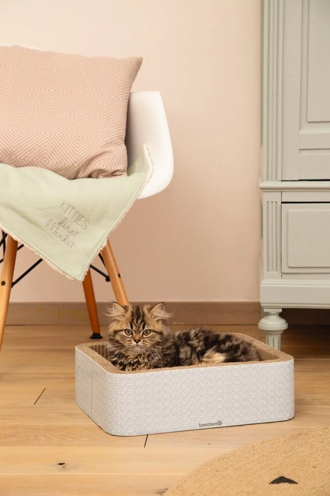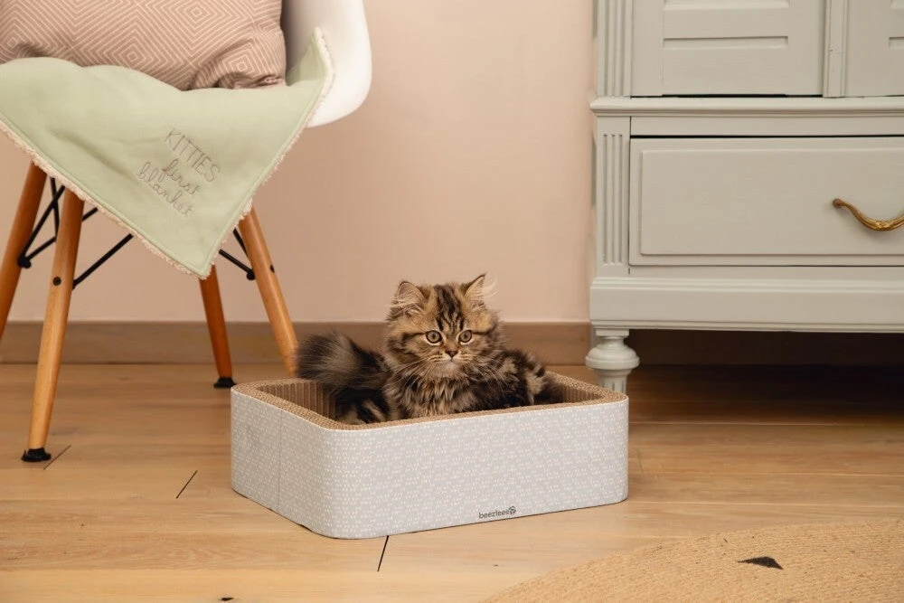 De Beeztees Kero krabmand is een leuke box die jouw kitten kan gebruiken om er lekker in te kruipen. Maar natuurlijk kan er ook lekker in worden gekrabd! Dit maakt het een echte 2in1 box. Deze box is gemaakt van karton, wat kittens prettig materiaal vinden. Voorzien van een vrolijk motief, zodat het ook leuk in huis staat!