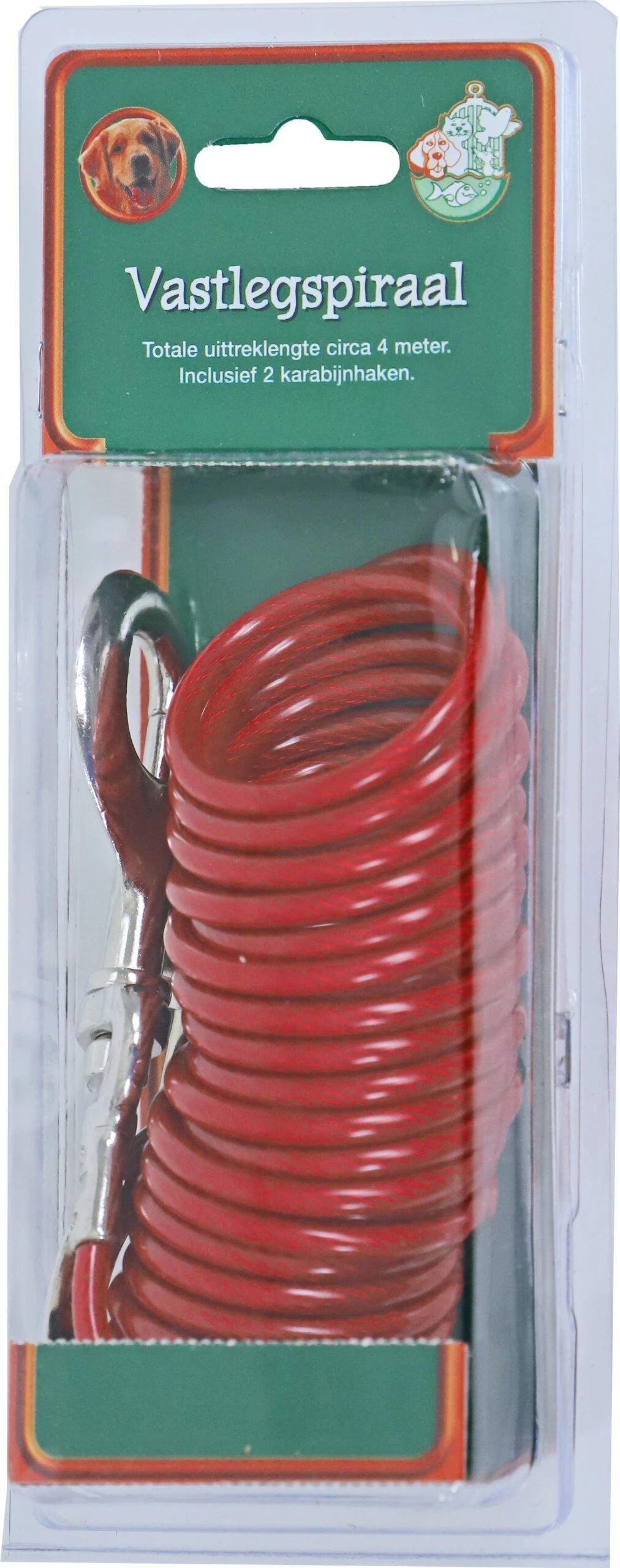 De totale uittreklengte is circa 4 meter uitrekbaar. Aan beide zijdeheeft de vastlegspiraal een muskatonhaak. Daarnaast is het draad is zeer lastig door te bijten. Ideaal voor jouw hond!
