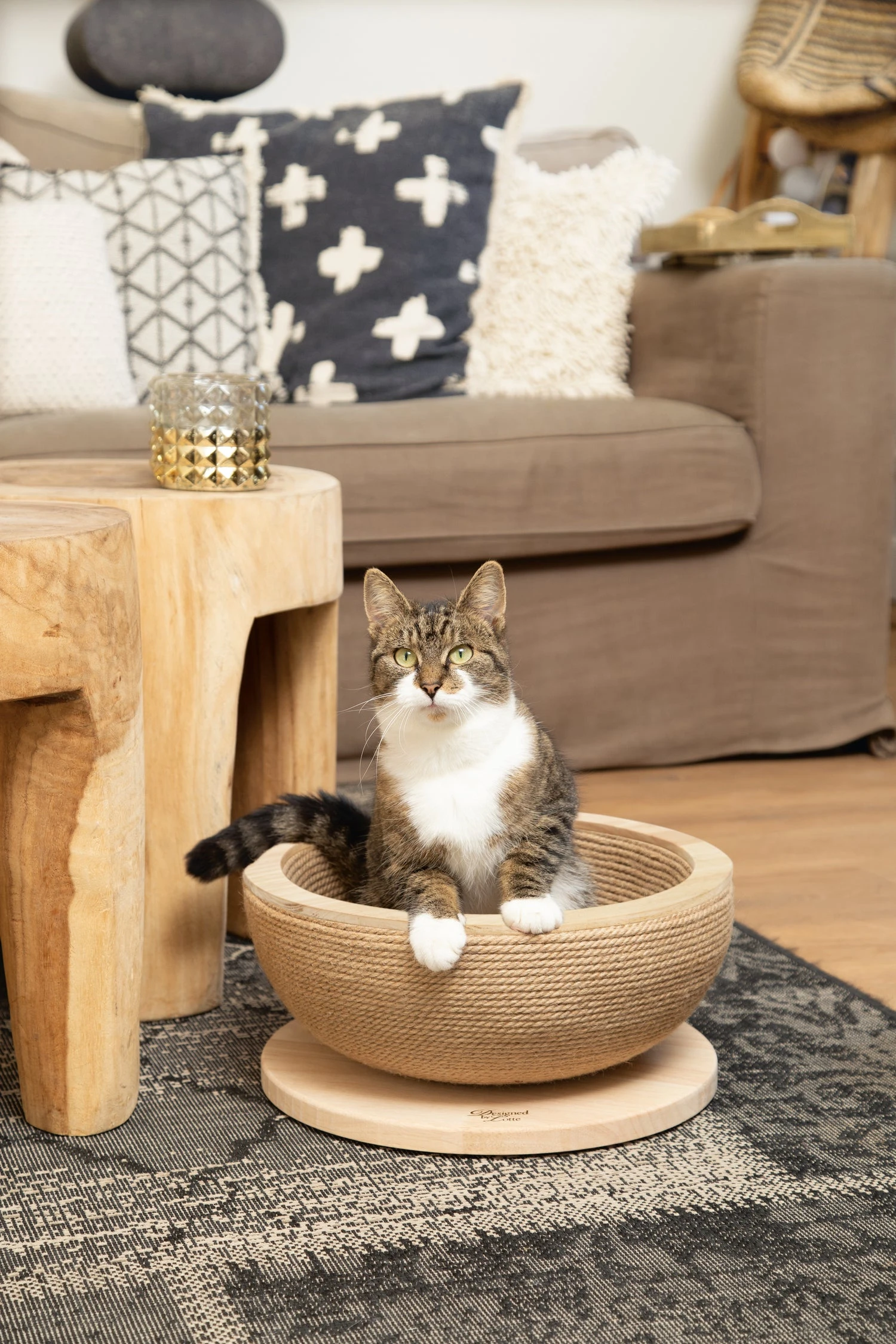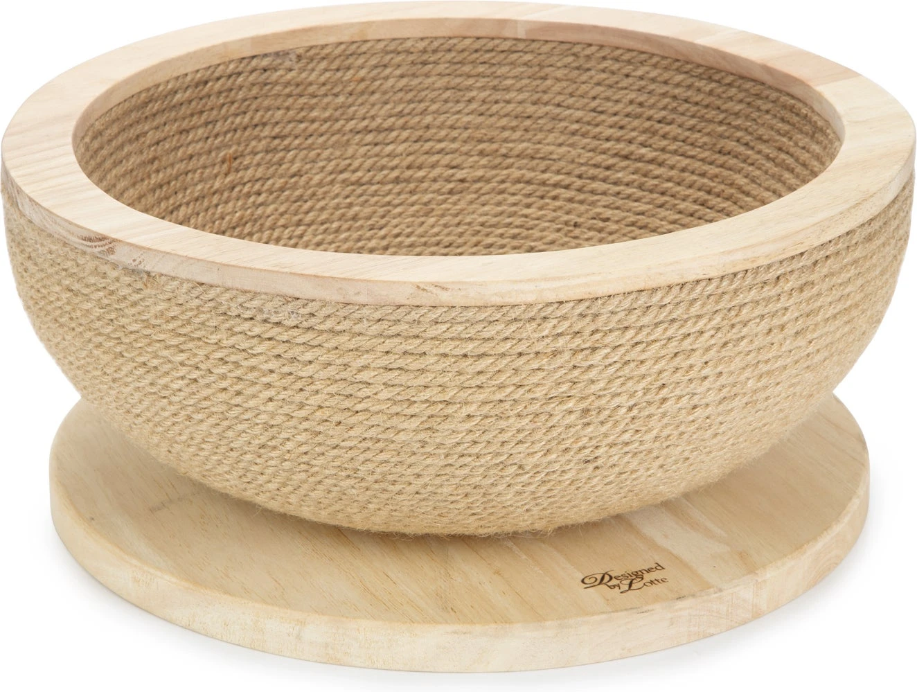 De Designed by Lotte Zaina krabmand heeft 2 functies. Enerzijds kan de mand worden gebruikt om te krabben. De mand is namelijk bekleed met jute touw, waardoor er volop kan worden gekrabd. Daarnaast kan Zaina ook door jouw kat worden gebruikt als mandje. Na het krabben is er dan tijd voor slapen en rusten en dat kan allemaal op dezelfde plek! – Jute touw – Houten voet – Inclusief beschermingsvoetjes voor het hout Afmeting: 36x36x16 cm
