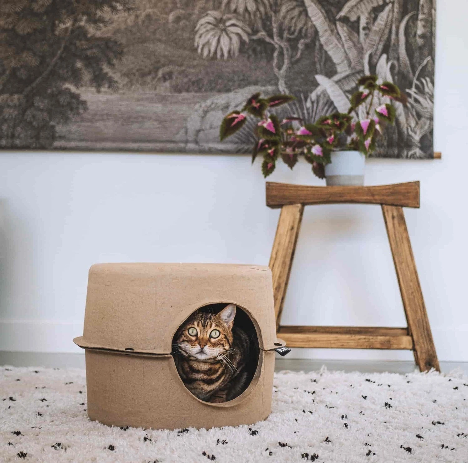 Op zoek naar een stijlvol alternatief voor een traditionele krabpaal of een standaard kartonnen doos? Dit stijlvolle, kartonnen kattenhuis is een must-have voor alle interieur liefhebbers die ook hun kat een fijne slaapplaats willen geven. Vanaf het moment dat jouw kat de BUNKER binnenstapt, wil hij nooit meer weg!