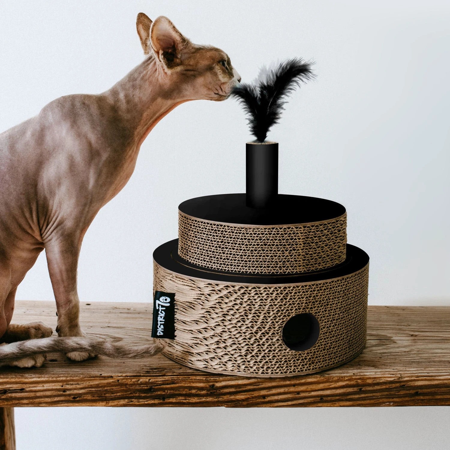Hoe leuk is het om jouw kat te verrassen met dit kartonnen speelgoed in de vorm van een echte verjaardagstaart? De FIESTA maakt geluid en het is gemaakt van duurzaam golfkarton, kortom alle ingrediënten voor jouw kat om zich te vermaken. Dit stijlvolle kartonnen speelgoed kan eenvoudig in elkaar worden gezet en bestaat uit drie lagen. De onderste laag is hol en hierin rolt een balletje welke gevuld is met rinkelende belletjes waar jouw kat urenlang speelplezier aan zal beleven.
