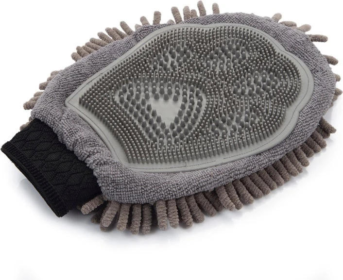 Met de Dirty Dog grooming handschoen van Dog Gone Smart krijg jij jouw hond weer snel droog. De ene zijde bevat superzacht pluche microfiber, welke 10 keer het eigen gewicht kan absorberen. De andere zijde kan worden gebruikt wanneer jouw hond droog is. Deze zijde heeft namelijk zachte rubberen nopjes, die kunnen worden gebruikt om dode haren uit de vacht te verwijderen.
