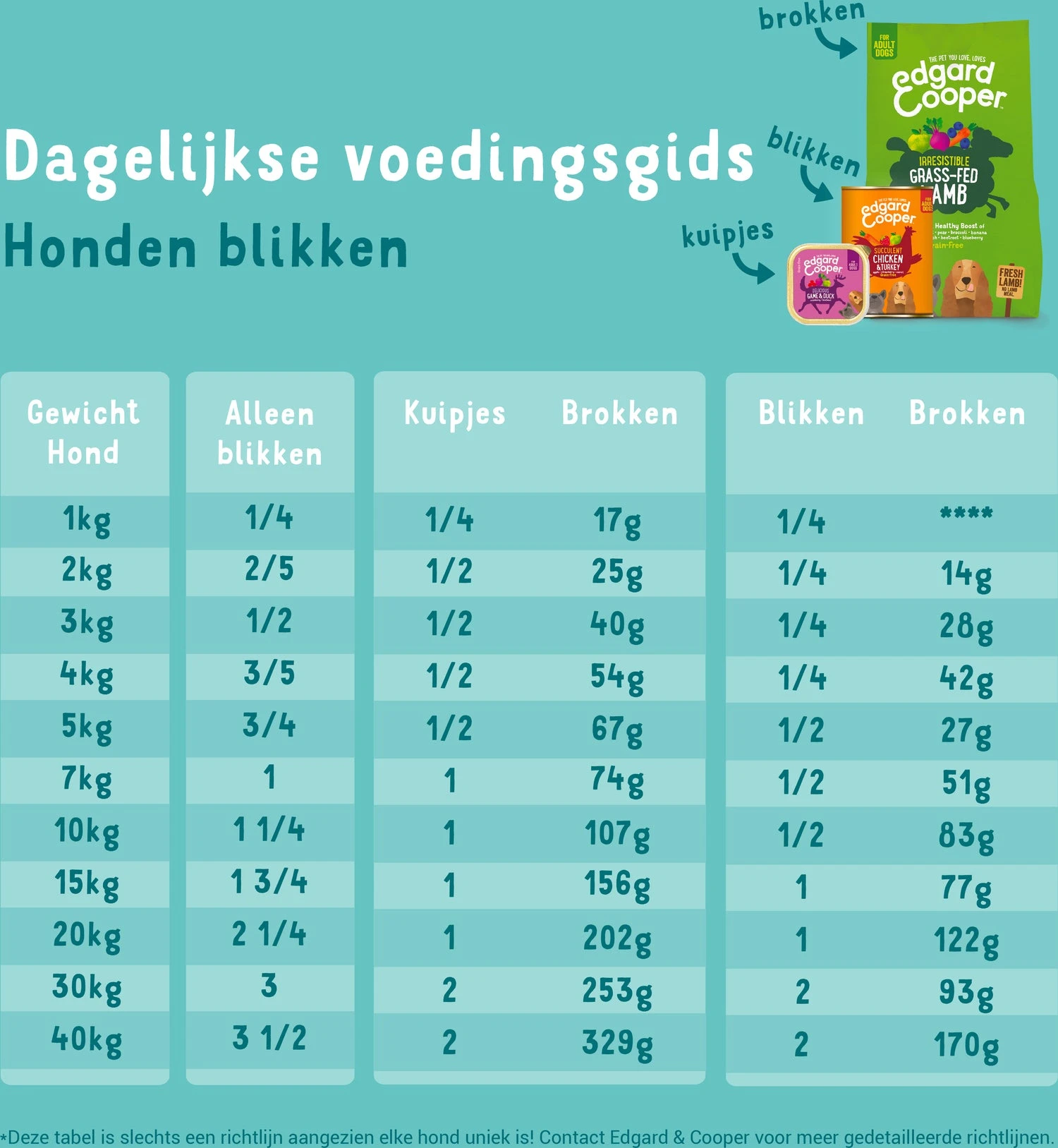 1. Honden zijn gewoontedieren, het is dus een goed idee om nieuw voer langzaam te introduceren. Meng over drie à vier dagen steeds meer Edgard & Cooper in de kom van je hond en steeds minder van je huidig voer. Zo simpel is het.