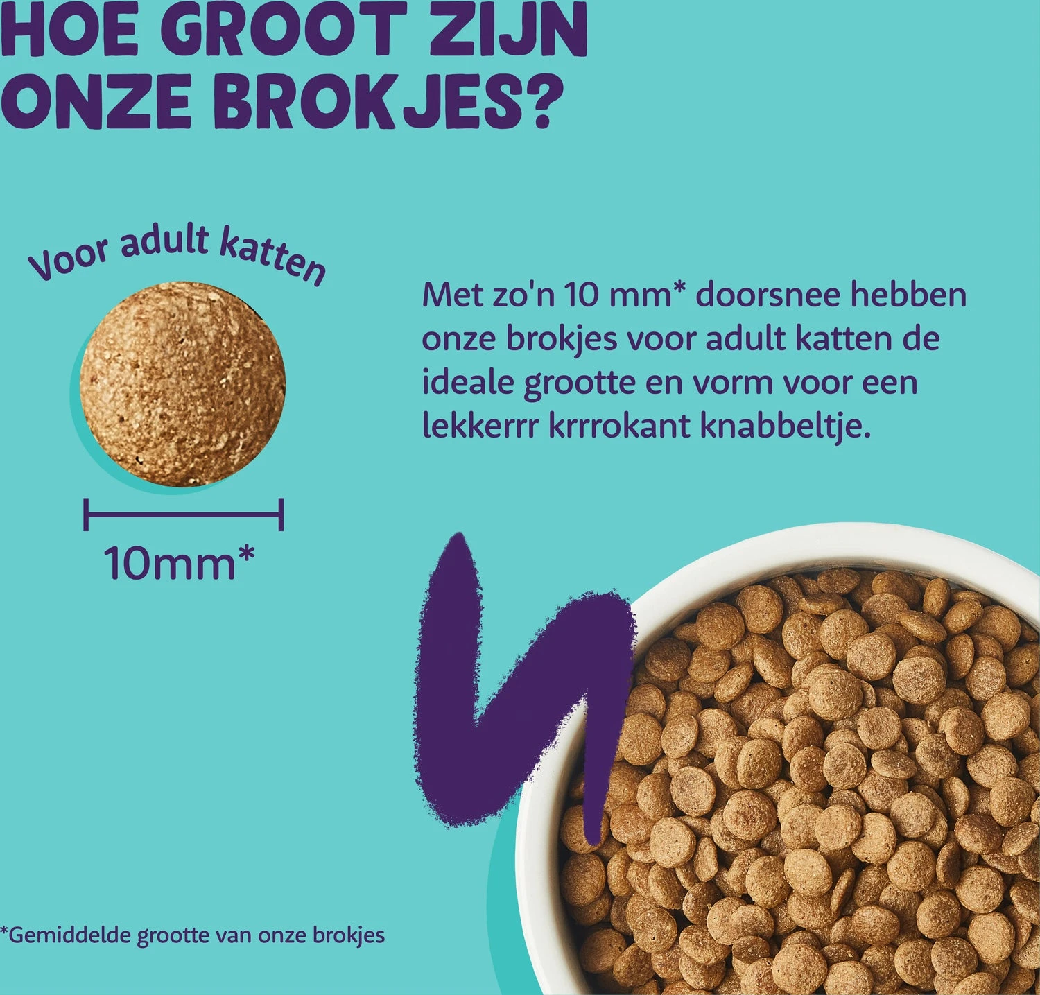 | Extra informatie | Check de richtlijnen op onze verpakking, en meet de dagelijkse portie voor jouw kat af. Zo ben je zeker dat poeslief zich niet overeet. Want hoe zou je zelf zijn met zo'n lekkere recepten? |
