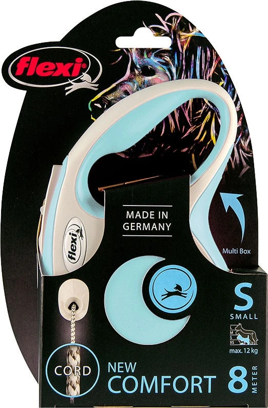 De rollijn New Comfort koord van Flexi heeft een strak lichtblauw design met witte elementen. De hondenriem is reflecterend en heeft een maximale vrije looplengte van 8 meter. Ideaal om lange wandelingen mee te maken. Geschikt voor kleine honden tot maximaal 12 kg. Er zijn momenten waarop een fractie van een seconde volstaat om alles op zijn kop te zetten. Goed als je kan vertrouwen op een remsysteem dat niet alleen intuïtief te bedienen is, maar ook in een fractie van een seconde stopt. Het beschikt over een oprolmechanisme, waardoor de riem nooit in de knoop zal gaan. Verkrijgbaar in verschillende maten en kleuren.
