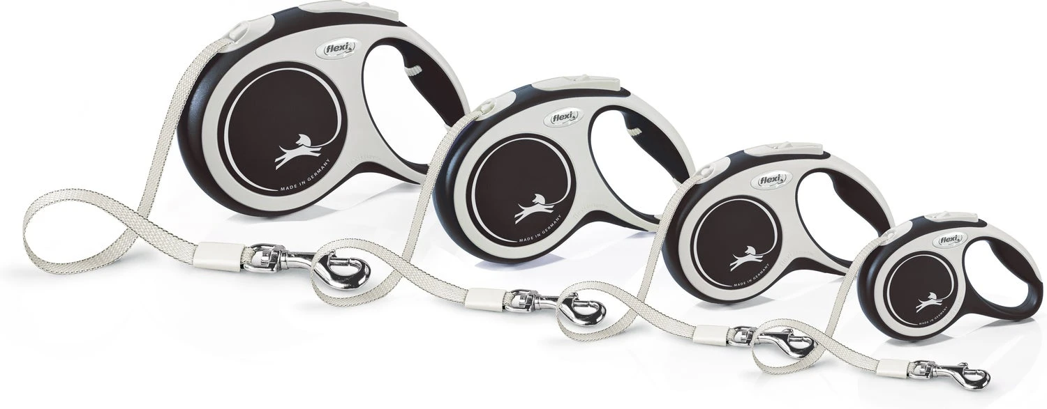 De rollijn New Comfort tape van Flexi heeft een strak zwart design met witte elementen. De hondenriem is reflecterend en heeft een maximale vrije looplengte van 3 meter. Ideaal om lange wandelingen mee te maken. Geschikt voor kleine honden tot maximaal 12 kg. Er zijn momenten waarop een fractie van een seconde volstaat om alles op zijn kop te zetten. Goed als je kan vertrouwen op een remsysteem dat niet alleen intuïtief te bedienen is, maar ook in een fractie van een seconde stopt. Het beschikt over een oprolmechanisme, waardoor de riem nooit in de knoop zal gaan. Verkrijgbaar in verschillende maten en kleuren.