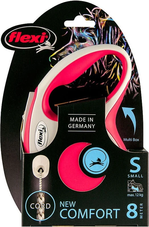 De rollijn New Comfort koord van Flexi is door het perfect afgestemde, tweekleurige design een echte blikvanger. De hondenriem heeft een maximale vrije looplengte van 8 meter en is geschikt voor kleine honden tot maximaal 12 kg.