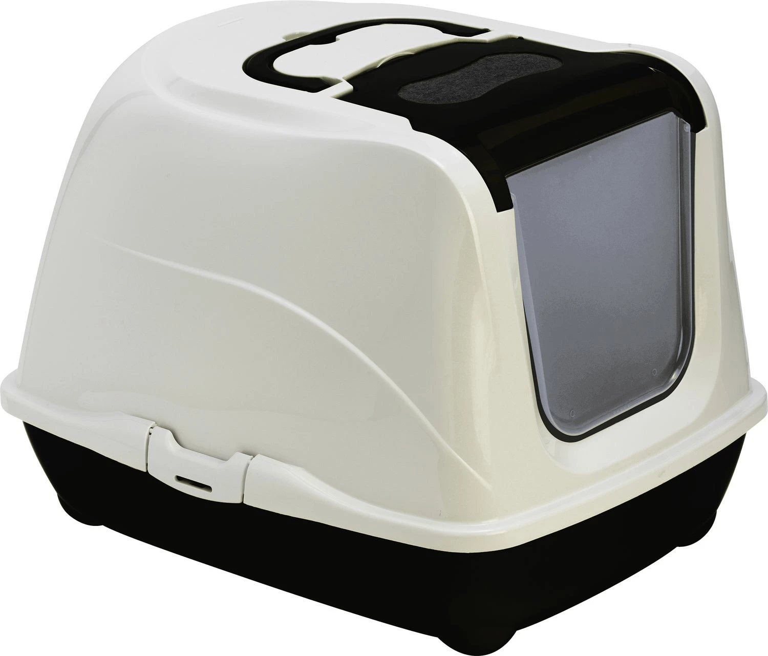 Kattenbak Flip Cat Jumbo van Moderna is een mooi vormgegeven kattentoilet met de afmetingen 43,9 x 57,6 x 41 cm. De naar boven openklapbare deur zal het dagelijkse schoonmaken van de kattenbak eenvoudiger maken.