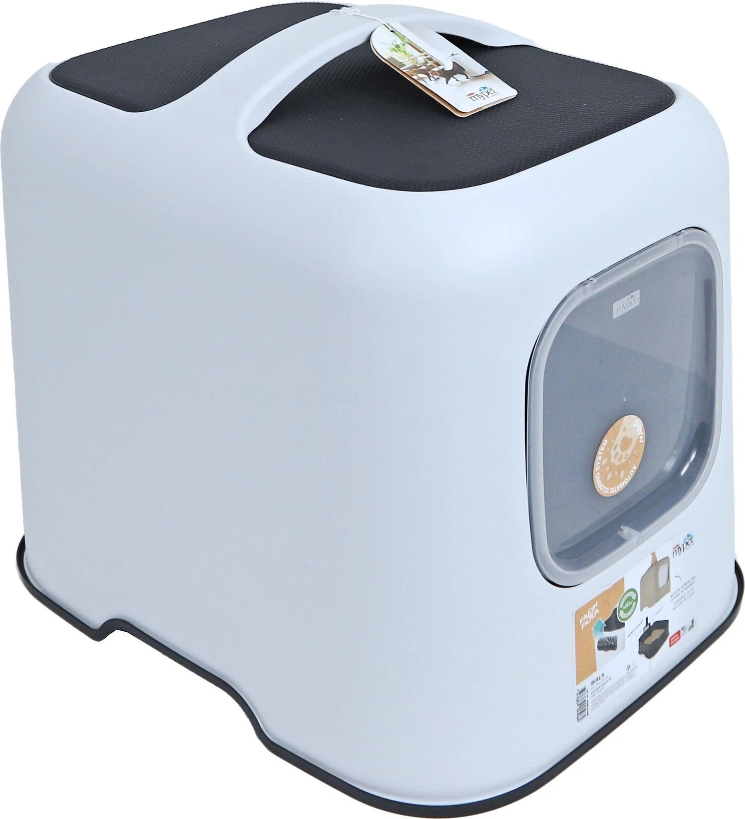 Het Rotho my pet kattentoilet Biala is een stijlvolle kattenbak die goed in te passen is in elk interieur, vanwege zijn moderne kleuren. Door de makkelijk afneembare bovenkap met handvat is het toilet ook zeer gemakkelijk te verschonen. De kap kan met een simpele handbeweging worden afgenomen en worden teruggeplaatst en er hoeven dus geen klemmen te worden vast of los geklikt.