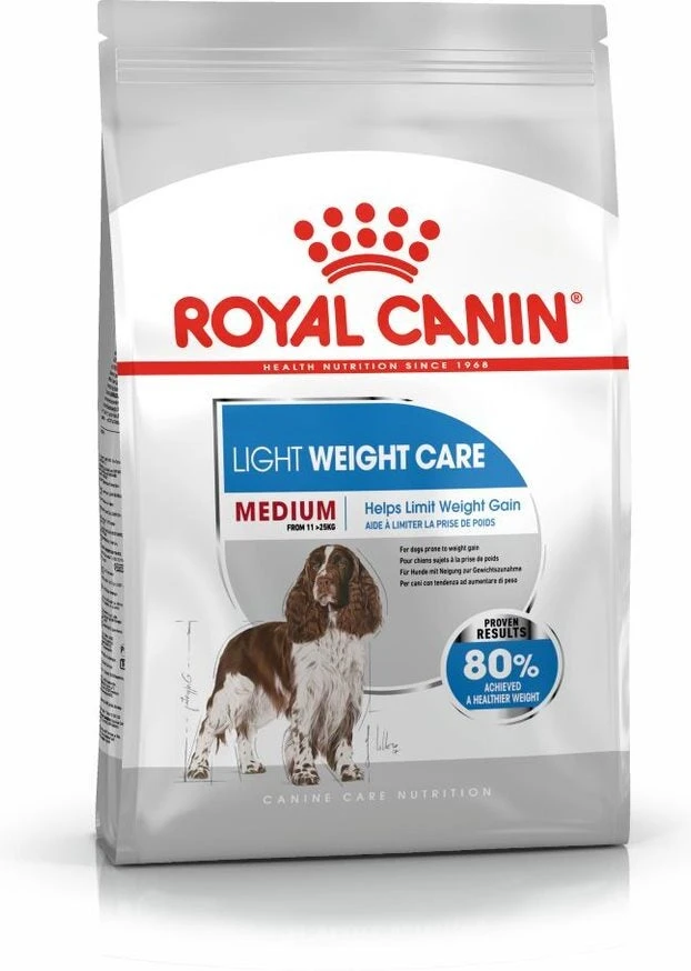Veel honden zijn te zwaar en hebben last van de belasting die de extra kilo’s geven op hun gewrichten. Zorg dat jouw hond sportief blijft met een hoog kwalitatieve hondenvoeding, ontwikkeld om het ideale gewicht van je hond te helpen behouden. Royal Canin Light Weight Care Medium is geschikt voor honden met een lichaamsgewicht tussen 11 en 25 kg en is speciaal ontwikkeld om een gewichtstoename te beperken.