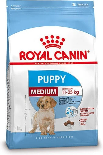 Royal Canin Medium Puppy is samengesteld met de specifieke voedingsbehoeften van een puppy. Een gepatenteerd complex van antioxidanten helpt de natuurlijke afweer van je pup te ondersteunen. Deze hondenvoeding is geschikt voor puppy’s tussen 2 en 12 maanden leeftijd, van een gemiddelde grootte en een volwassen gewicht tussen de 11 en 25 kg.