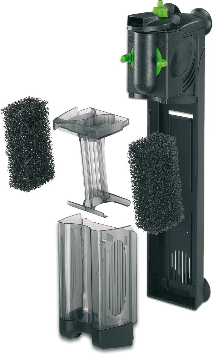 - Alle binnenfilters hebben nu tweedelige filterkamers. Zo blijft er tijdens het schoonmaken altijd een filterspons in de filterkamer, waardoor het verlies van nuttige bacteriën minimaal is.