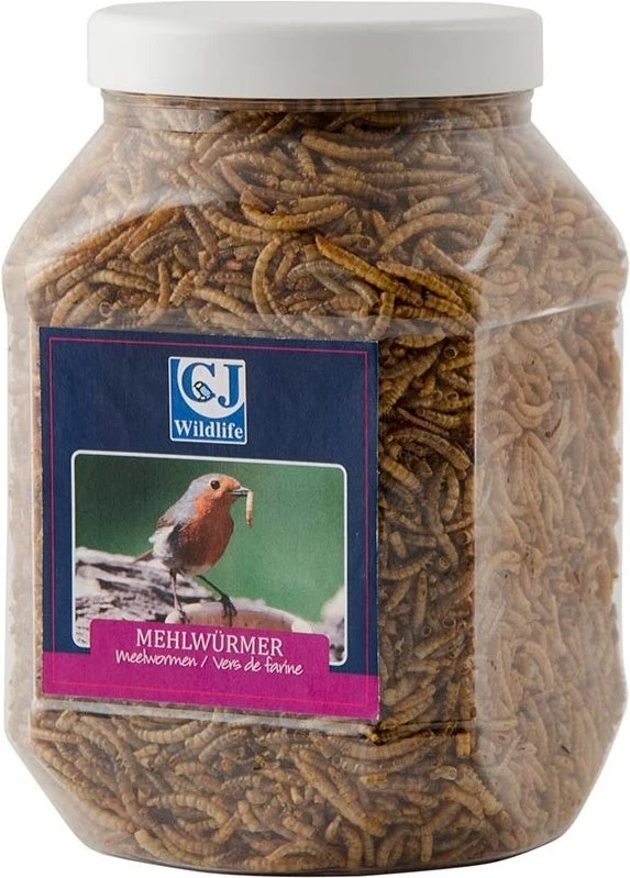 Gedroogde meelwormen zijn een smakelijke, eiwitrijke en natuurlijke voeding voor veel soorten tuinvogels. Eiwitten uit insecten, zoals meelwormen, zijn belangrijk voor de groei van jonge vogels. Met meelwormen bied je op een eenvoudige manier insecten aan.